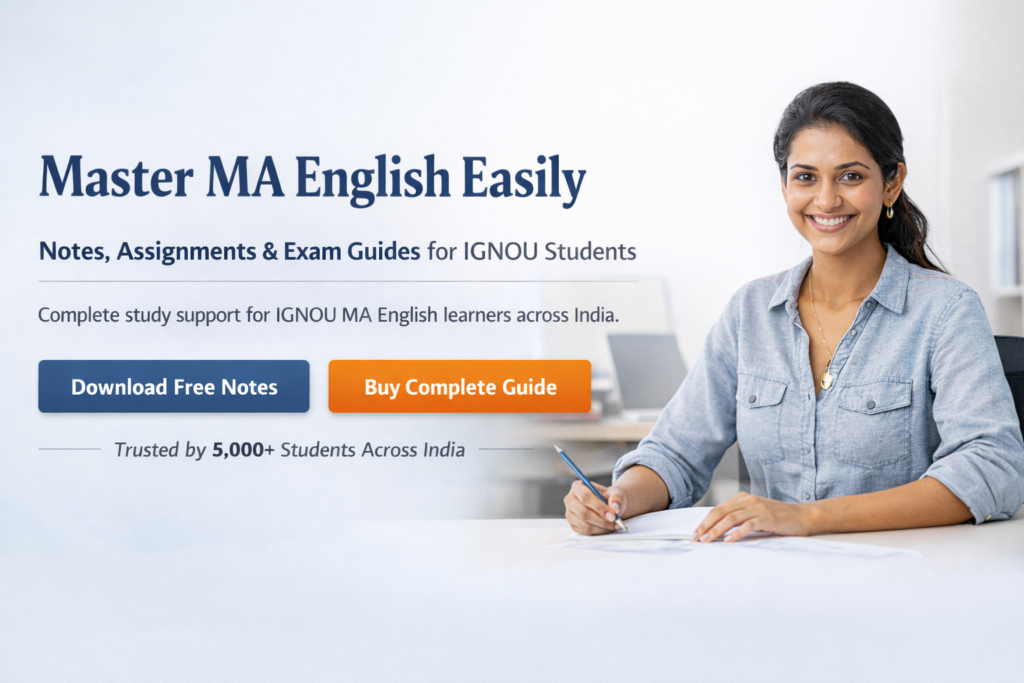 Complete study guide with notes, summaries, important questions, and solved assignments for IGNOU MA English students.